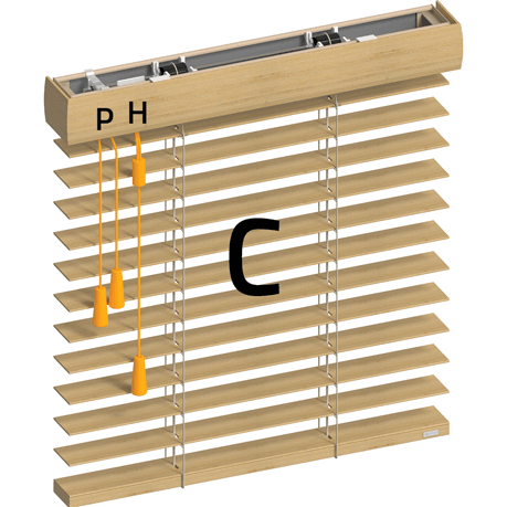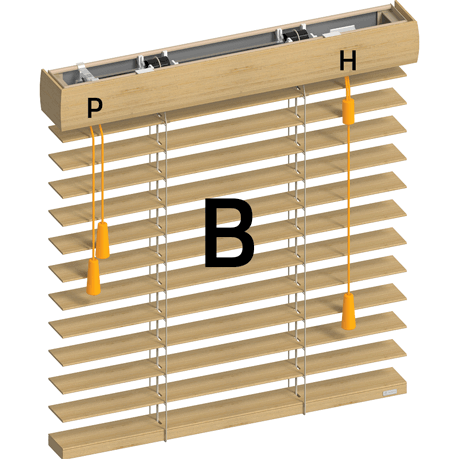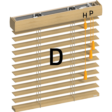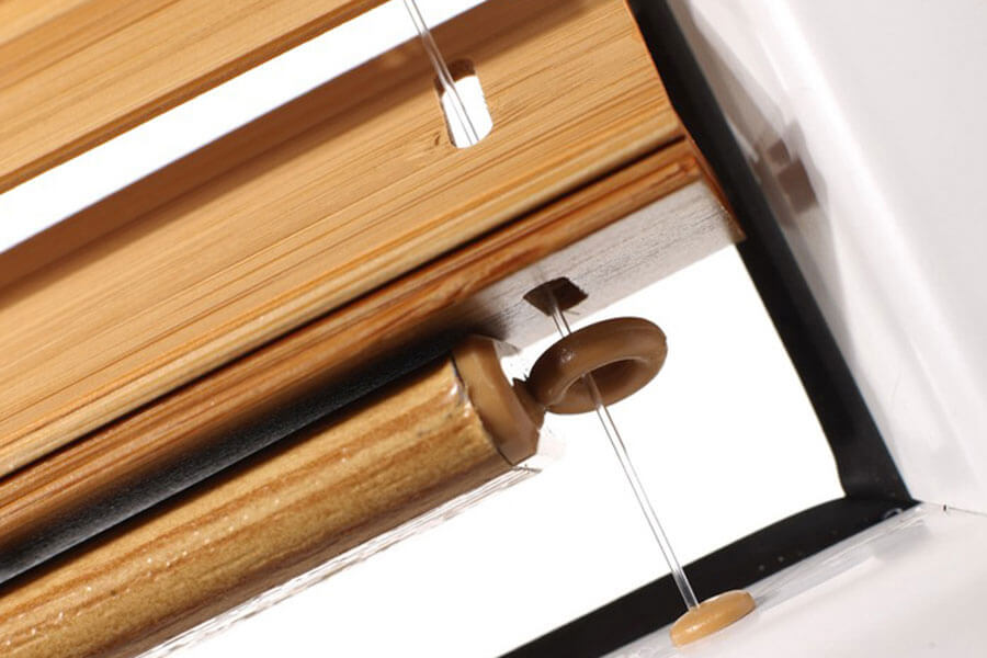 Pakiet listew bambusowych w systemie standard na drabince sznurkowej po podniesieniu zajmuje 70 mm na 1 m długości żaluzji + 80 mm RG i listwa dolna.