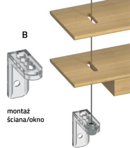Pakiet listew bambusowych w systemie standard na drabince taśmowej po podniesieniu zajmuje 80 mm na 1 m długości żaluzji + 80 mm RG i listwa dolna.